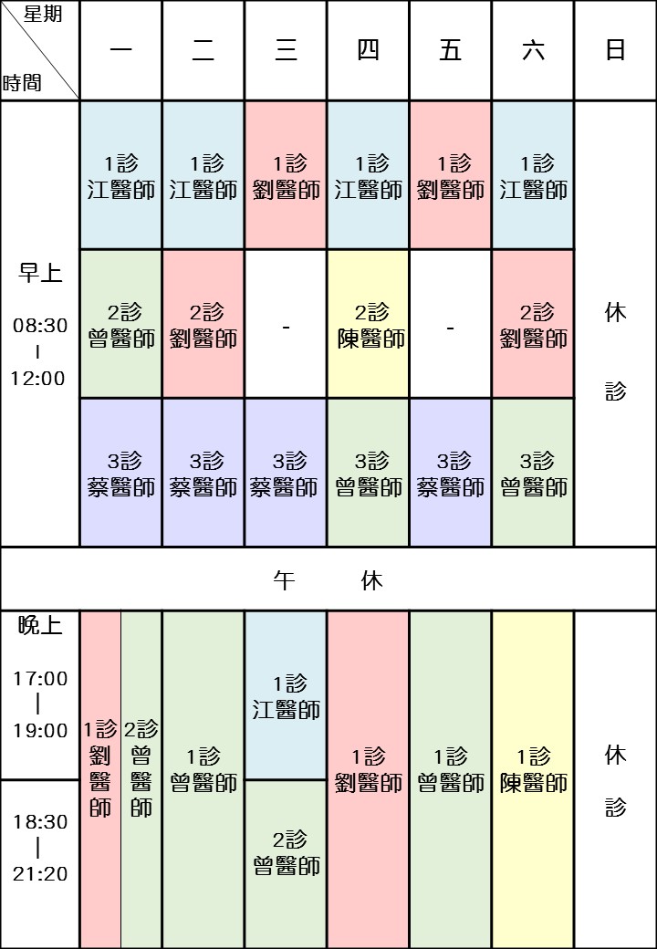 門診時間:週一~週六 早上08:30~12:00 ,